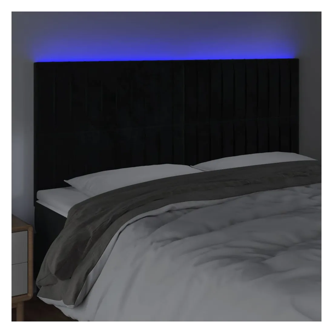 Cette tête de lit à LED classique, au design élégant, donne à votre cadre de lit une touche de modernité étonnante et convient parfaitement à toute chambre à coucher. Velours doux : le velours est un tissu doux et luxueux qui se reconnaît à son tas dense de fibres uniformément coupées qui ont une touche lisse. Le tissu en velours présente un toucher doux distinctif, ce qui le rend confortable au toucher.LED colorée : apportez de l'éclairage dans l'obscurité avec des lumières LED colorées !Hauteur réglable : la tête de lit est réglable en hauteur selon vos préférences.Excellent soutien : la tête de lit vous offre un excellent soutien du dos lorsque vous êtes assis dans votre lit pour lire ou regarder la télévision.Bande à LED découpable : cette bande à LED flexible peut être ajustée en longueur. Le symbole des ciseaux indique où la bande peut être coupée en toute sécurité sans l'endommager. Remarque :Seule la partie avec un symbole de ciseaux peut être coupée et seule la partie avec l'USB continuera à fonctionner comme avant.Chaque produit est livré avec un manuel de montage dans la boîte pour un montage facile.Ce produit est doté d'un connecteur USB, mais la source d'alimentation certifiée de USB 5V n'est pas incluse.