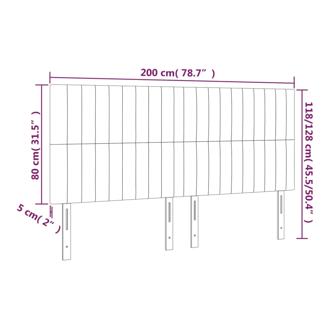 200 x 5 x 118/128 cm