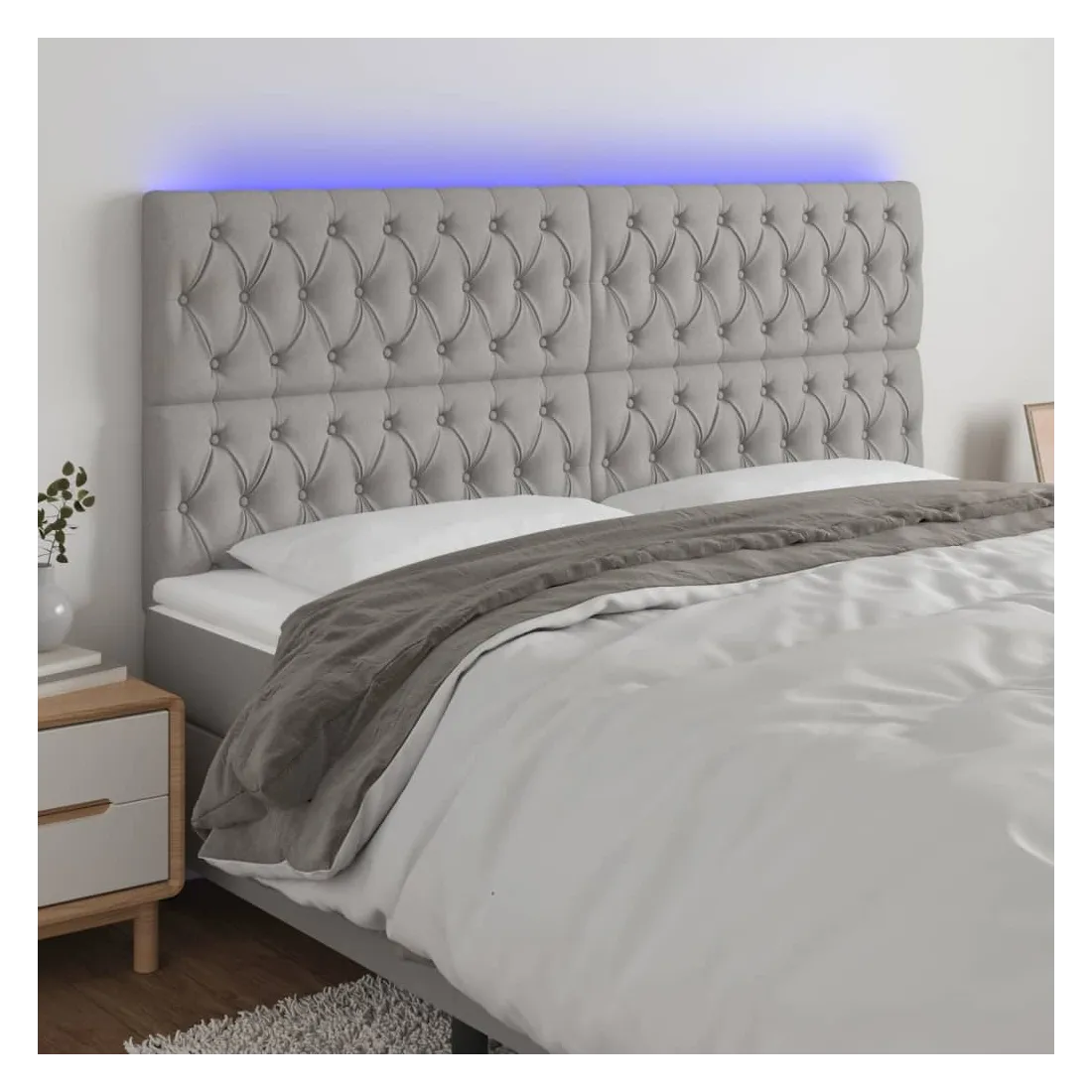 Tête de lit à LED Gris clair 200x7x118/128 cm Tissu