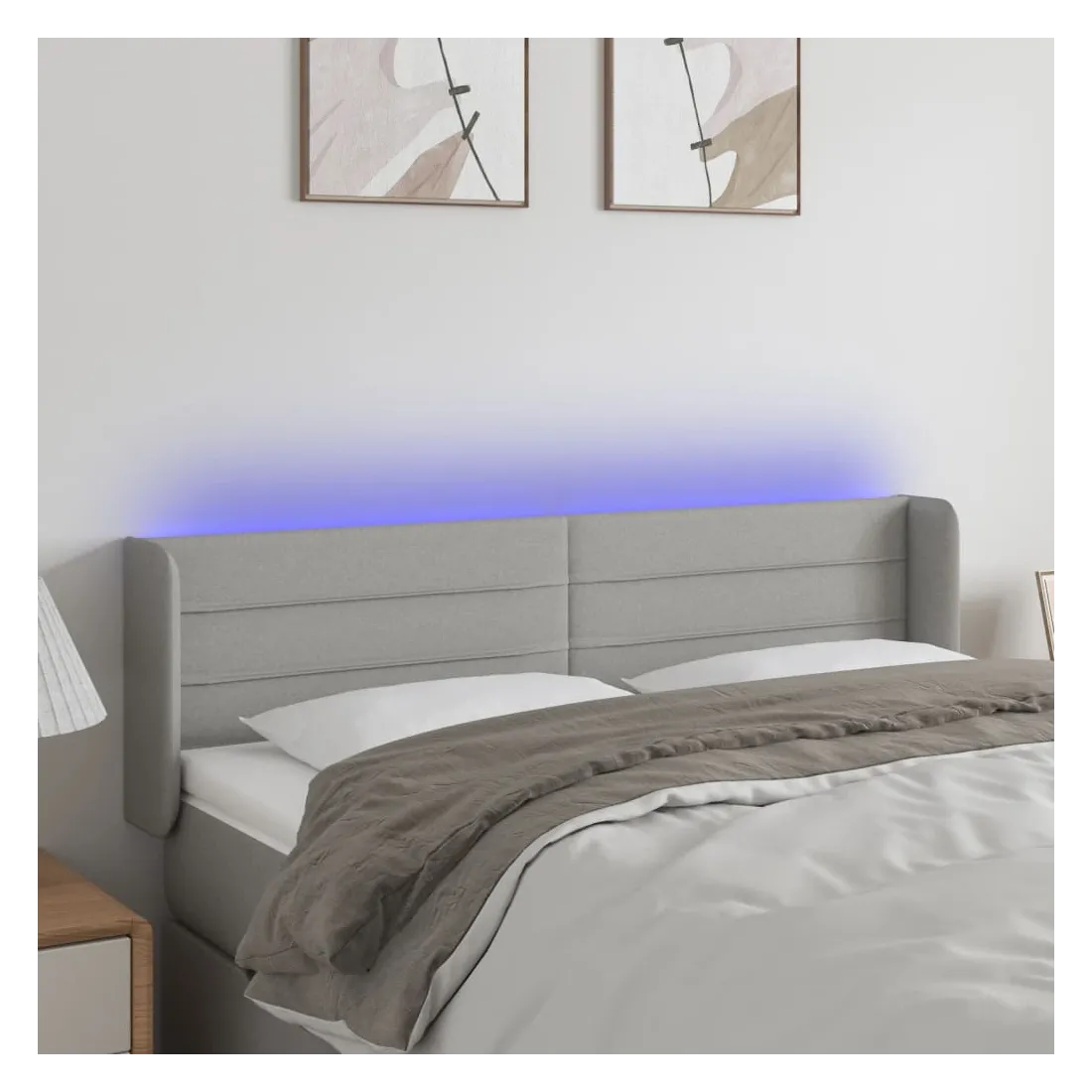 Tête de lit à LED Gris clair 147x16x78/88 cm Tissu