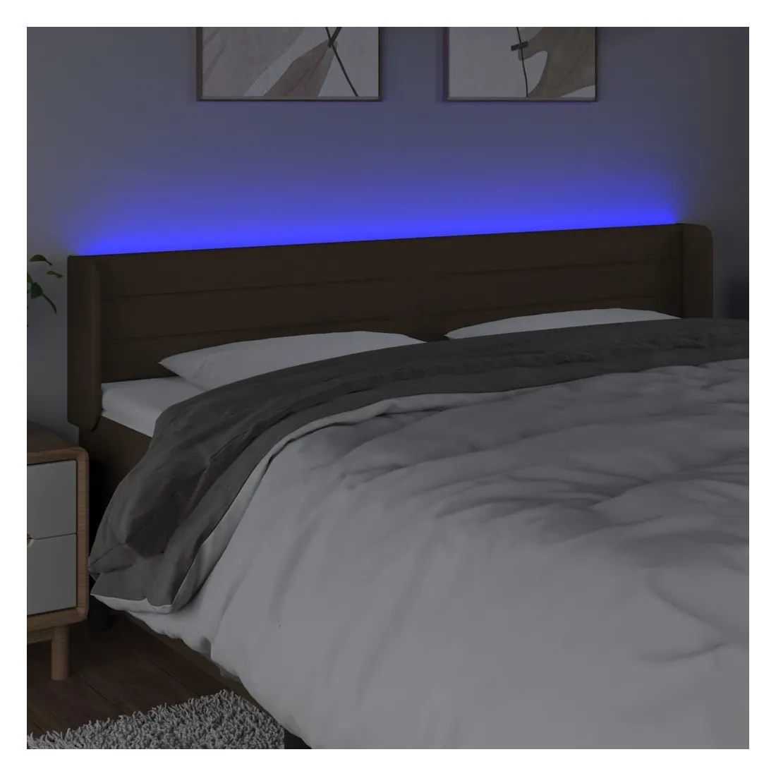 Cette tête de lit à LED classique, au design élégant, donne à votre cadre de lit une touche de modernité étonnante et convient parfaitement à toute chambre à coucher. Tissu durable : le tissu présente un aspect simple et épuré, et il est respirant et durable.LED colorée : apportez de l'éclairage dans l'obscurité avec des lumières LED colorées !Hauteur réglable : la tête de lit est réglable en hauteur selon vos préférences.Excellent soutien : la tête de lit vous offre un excellent soutien du dos lorsque vous êtes assis dans votre lit pour lire ou regarder la télévision.Bande à LED découpable : cette bande à LED flexible peut être ajustée en longueur. Le symbole des ciseaux indique où la bande peut être coupée en toute sécurité sans l'endommager. Remarque :Seule la partie avec un symbole de ciseaux peut être coupée et seule la partie avec l'USB continuera à fonctionner comme avant.Chaque produit est livré avec un manuel de montage dans la boîte pour un montage facile.Ce produit est doté d'un connecteur USB, mais la source d'alimentation certifiée de USB 5V n'est pas incluse.