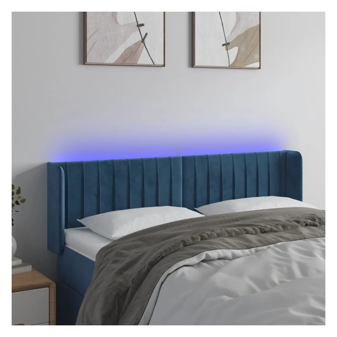 Tête de lit à LED Bleu foncé 147x16x78/88 cm Velours