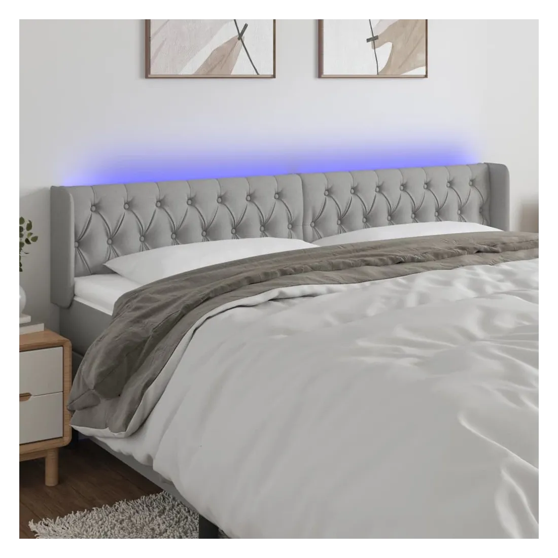 Tête de lit à LED Gris clair 203x16x78/88 cm Tissu