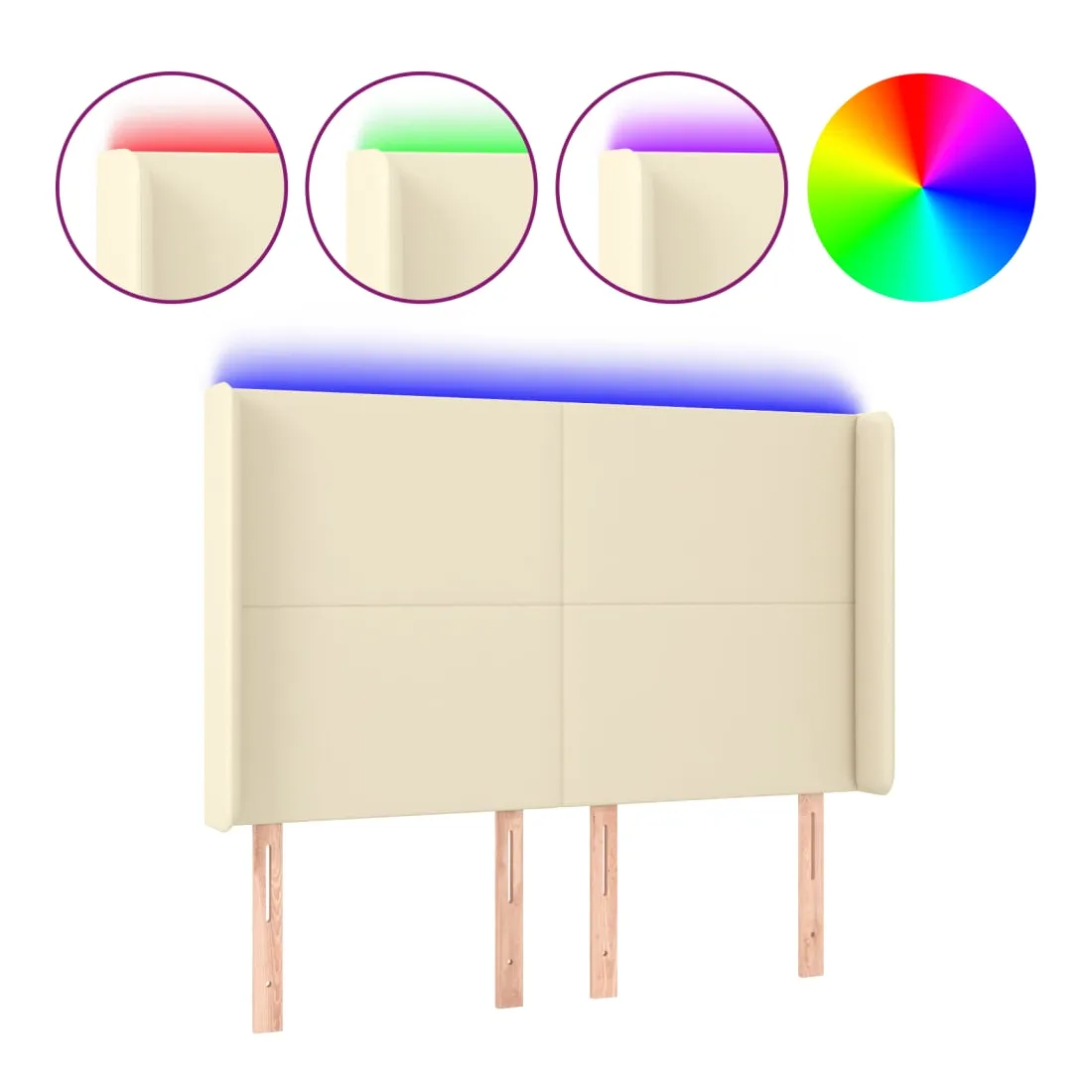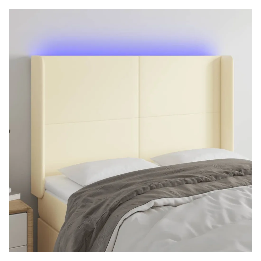 Tête de lit à LED Crème 147x16x118/128 cm Similicuir