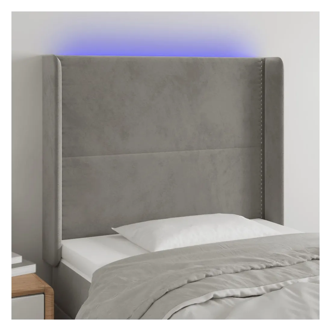 Tête de lit à LED Gris clair 103x16x118/128 cm Velours