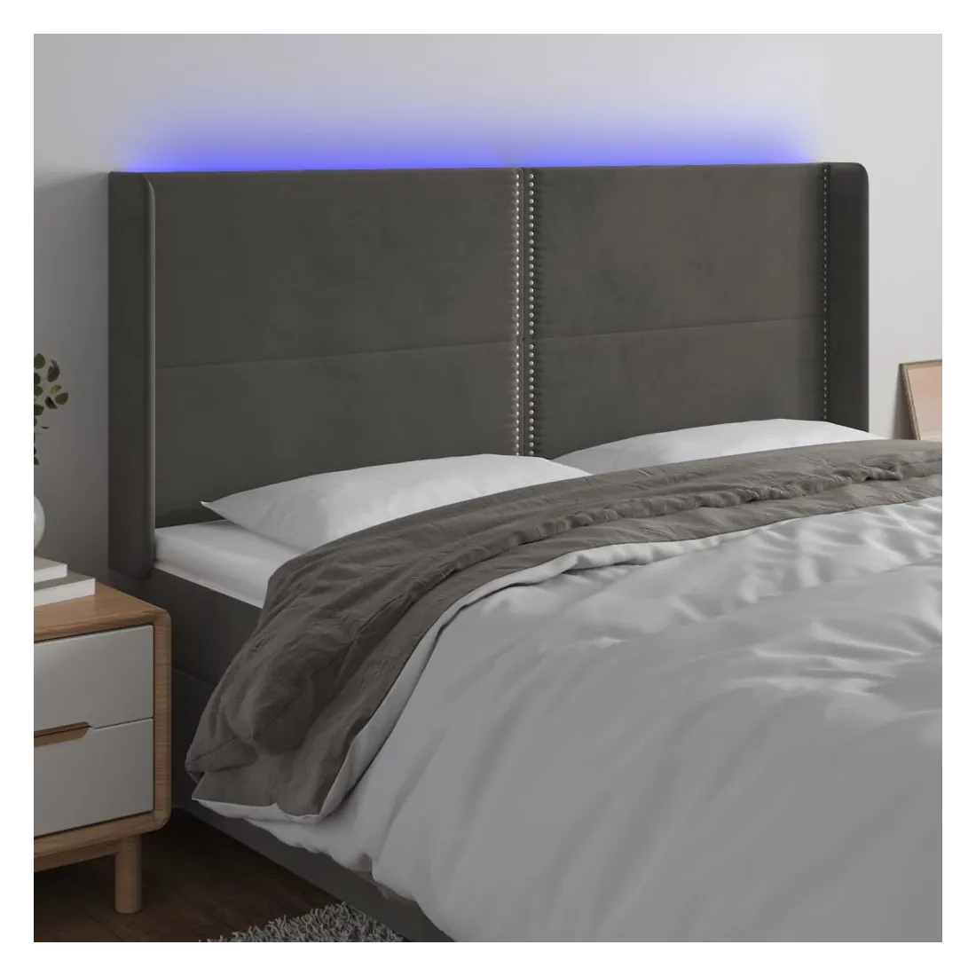 Tête de lit à LED Gris foncé 163x16x118/128 cm Velours