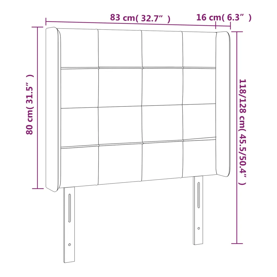 83 x 16 x 118/128 cm