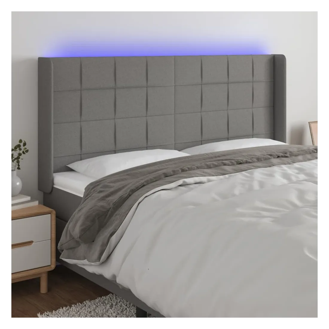 Tête de lit à LED Gris foncé 183x16x118/128 cm Tissu