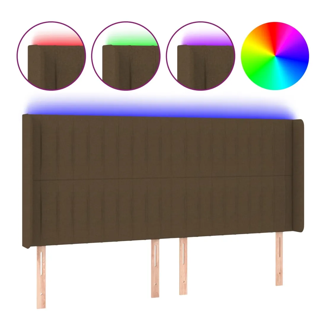 Tête de lit à LED Marron foncé 163x16x118/128 cm Tissu