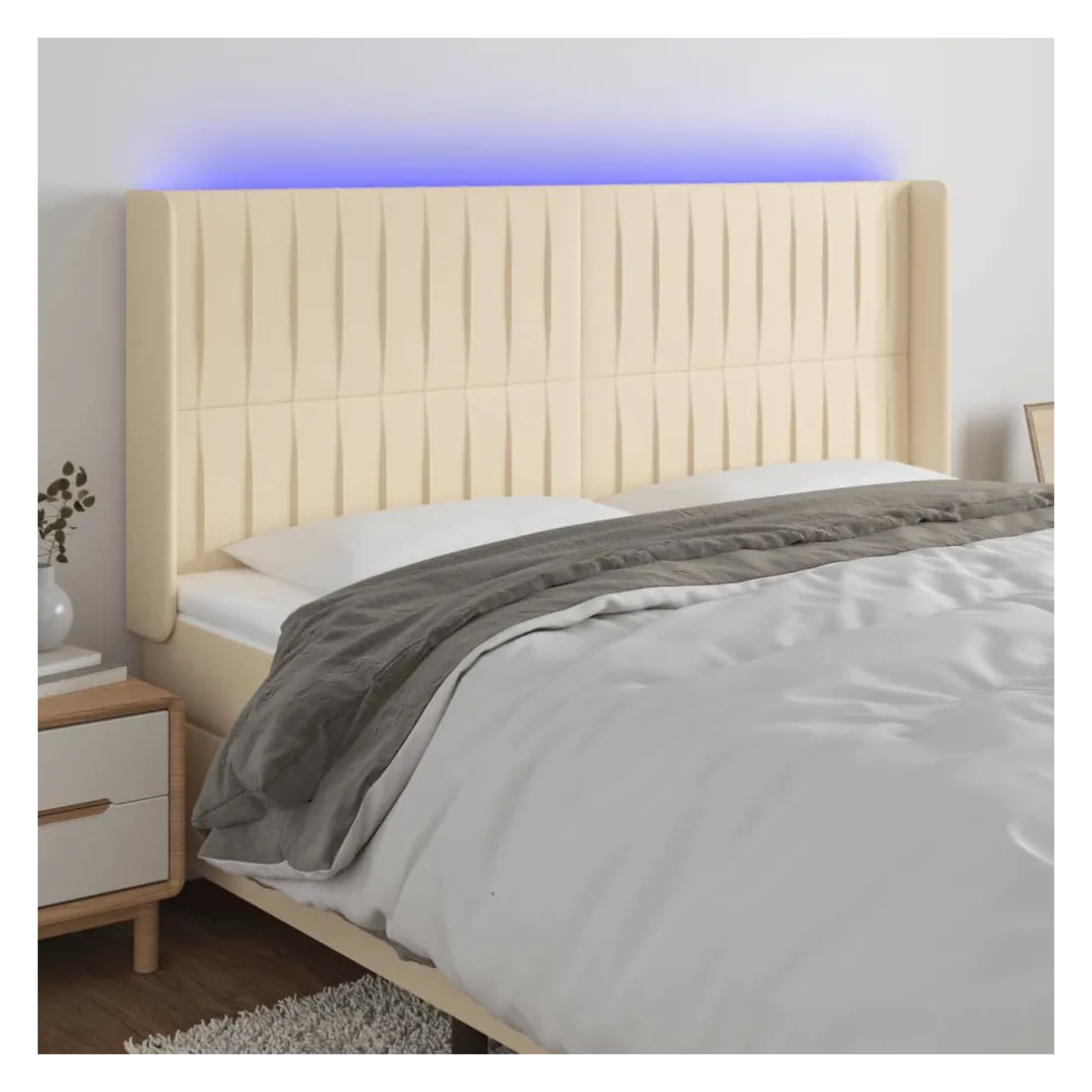 Tête de lit à LED Crème 163x16x118/128 cm Tissu