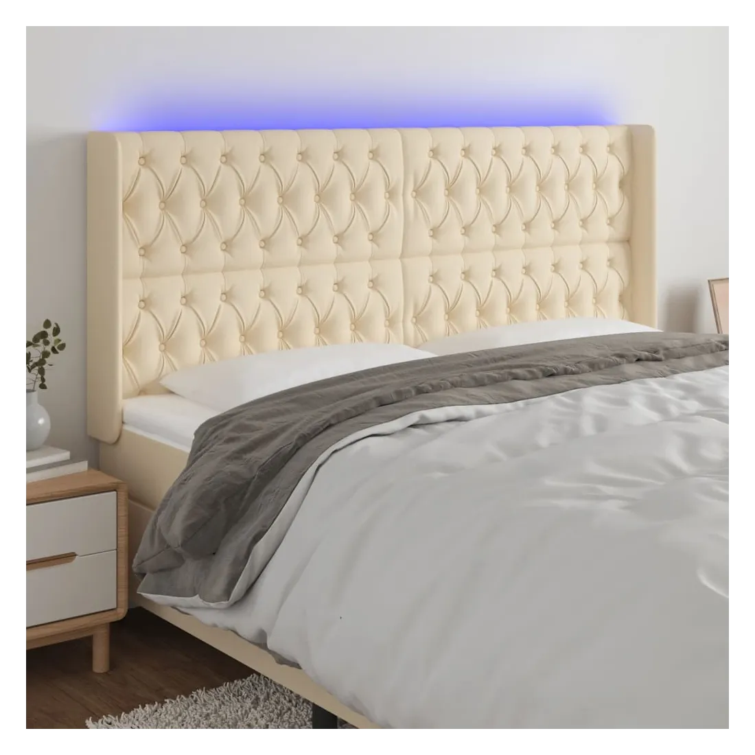 Tête de lit à LED Crème 203x16x118/128 cm Tissu