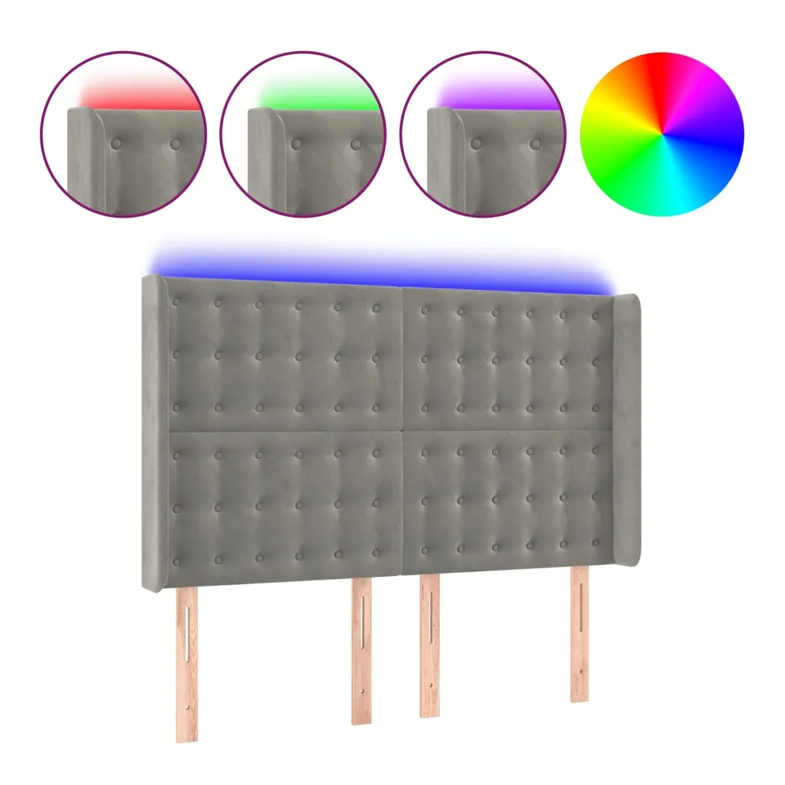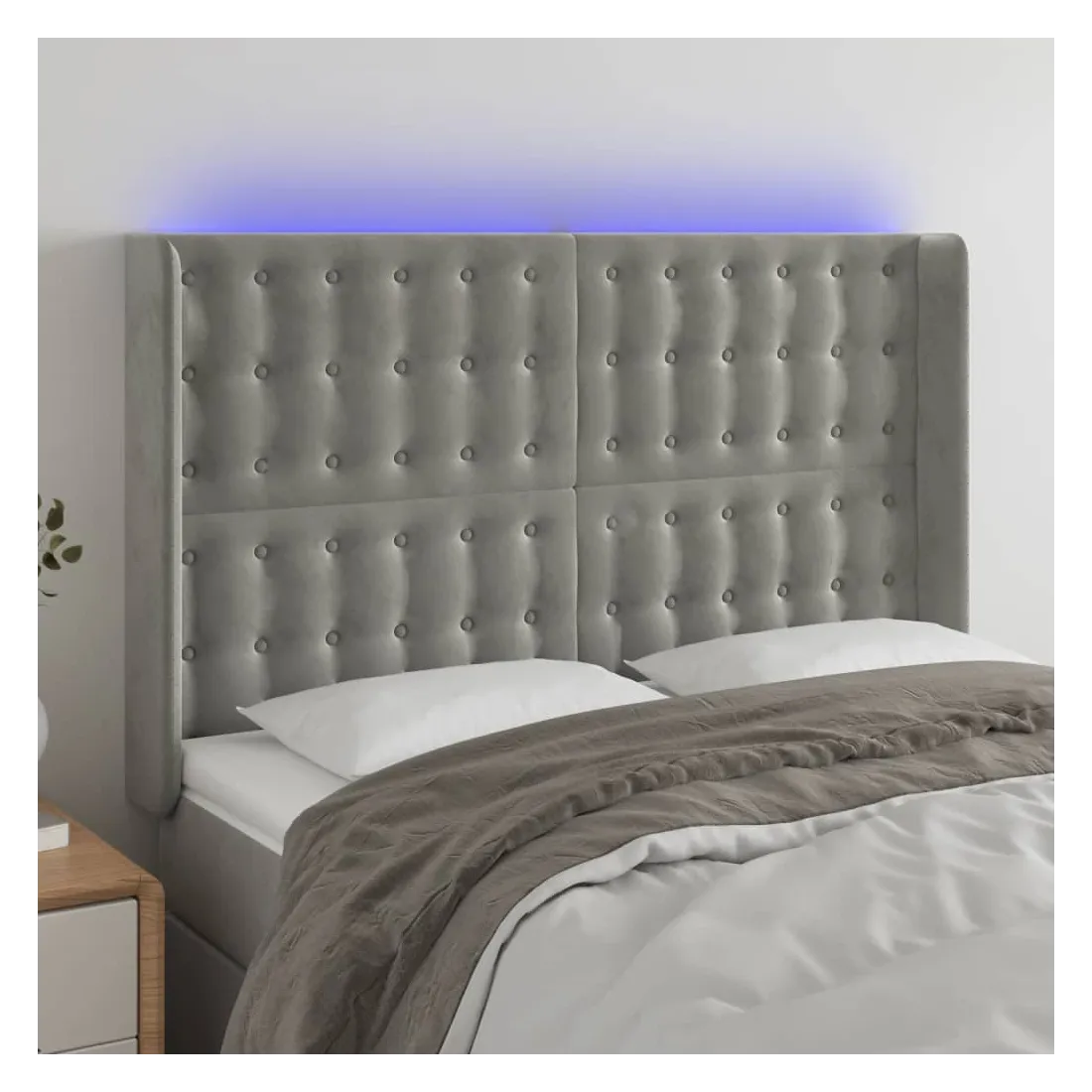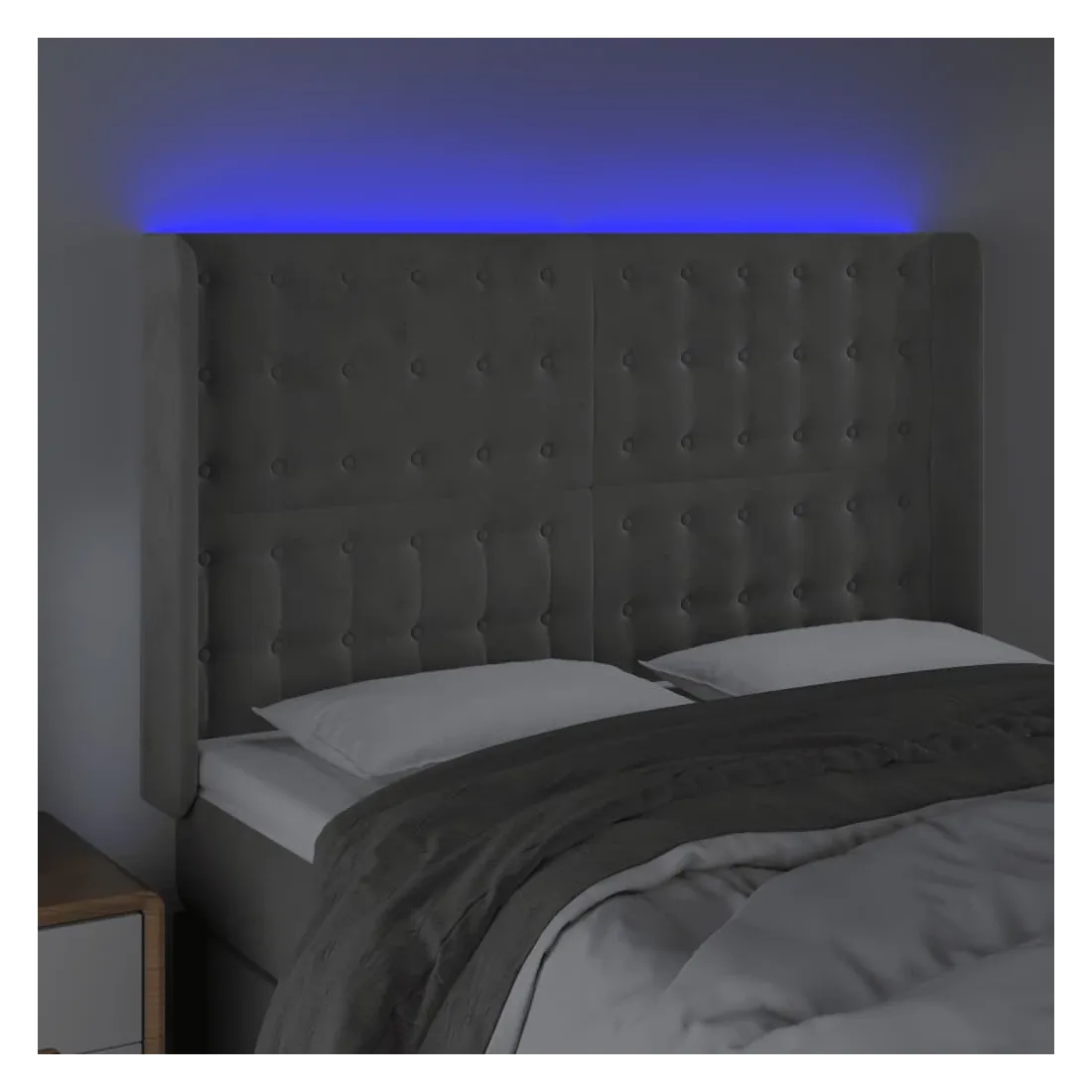 Tête de lit à LED Gris clair 147x16x118/128 cm Velours
