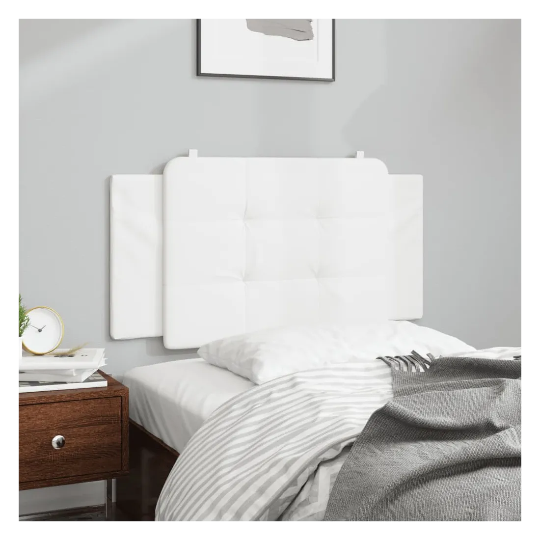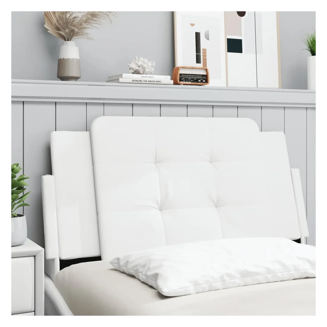 Ce coussin de tête au design élégant confère à votre cadre de lit un aspect complet et convient à toute chambre à coucher. Similicuir durable : le similicuir de qualité supérieure est un matériau très durable. Il est résistant aux taches, ce qui le rend facile à nettoyer avec un chiffon humide. La surface lisse donne également un aspect luxueux et la beauté du cuir véritable. Excellent soutien : l'oreiller de tête de lit est rembourré avec de la mousse pour un confort ultra doux et optimal vous offre un excellent soutien du dos lorsque vous êtes assis dans votre lit pour lire ou regarder la télévision. Design pratique : le coussin de la tête de lit est doté d'une fermeture à glissière pour faciliter l'installation, et les bandes auto-agrippantes au dos peuvent être utilisées pour fixer les lampes LED. Installation polyvalente : le coussin de tête de lit peut être accroché au mur avec les sangles incluses pour s'adapter à n'importe quel style de lit. Vous pouvez également l'utiliser avec une tête de lit du cadre de lit incurvé dans notre boutique, il suffit d'enlever la housse en tissu d'origine de la tête de lit, et de la recouvrir avec ce coussin de tête, et vous aurez alors une tête de lit confortable ! Beauté classique : les blocs carrés avec des pointes ajoutent à la beauté classique de la tête de lit rembourrée. Bon à savoir :La livraison comprend uniquement le coussin de tête. Le cadre de lit et le matelas ne sont pas inclus. Vous pouvez consulter notre boutique pour les cadres et matelas assortis.