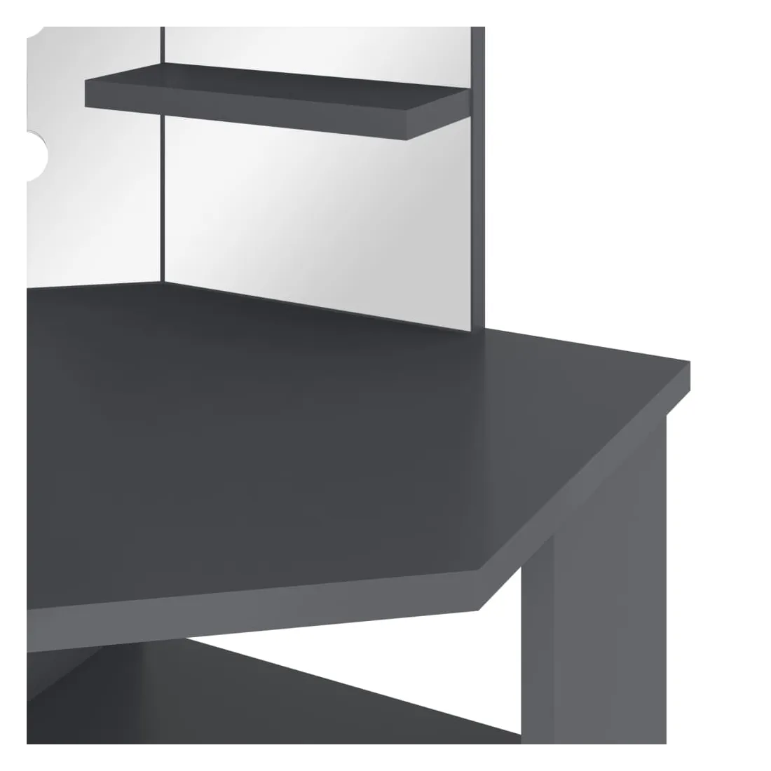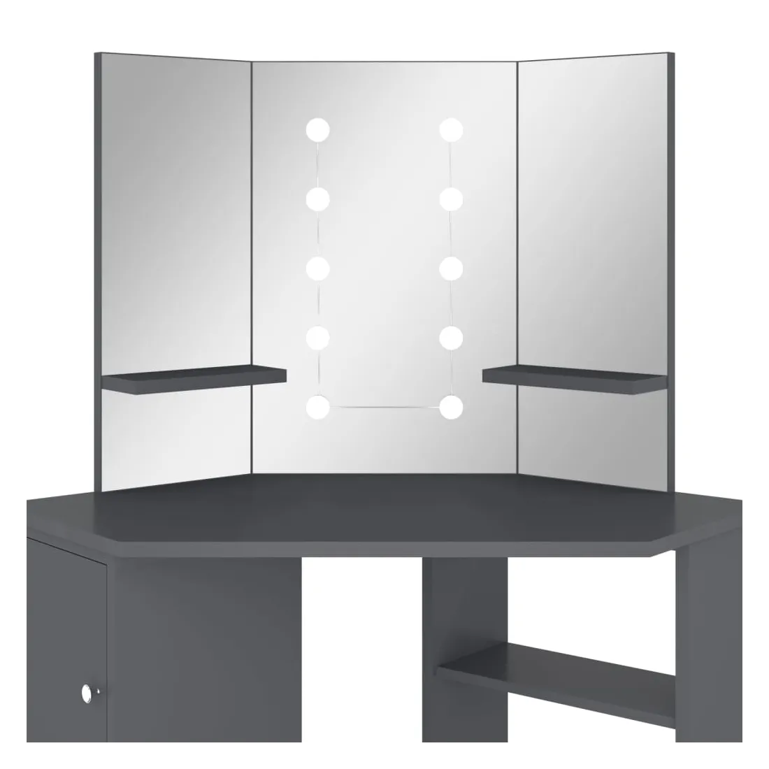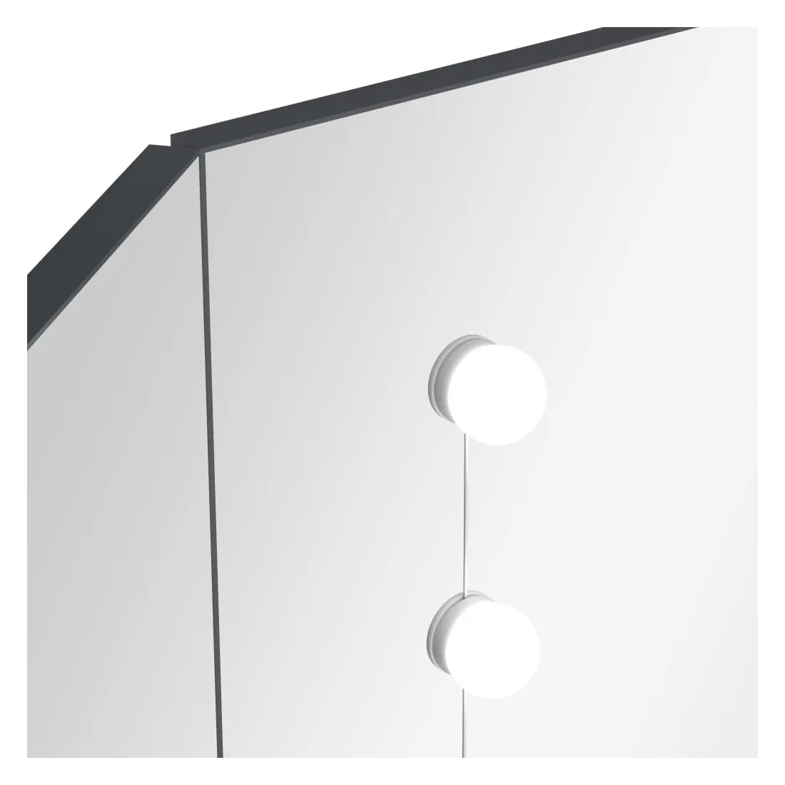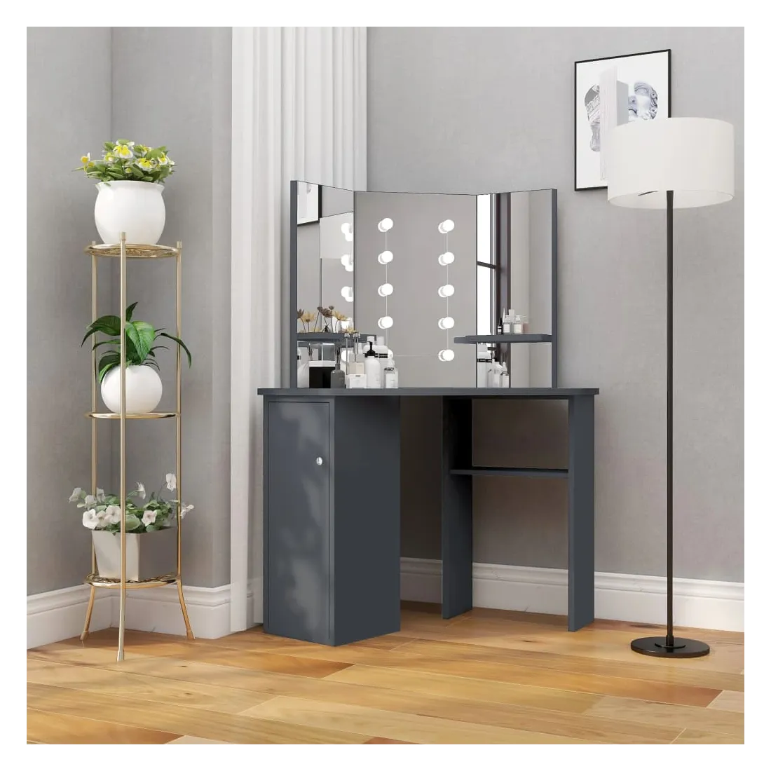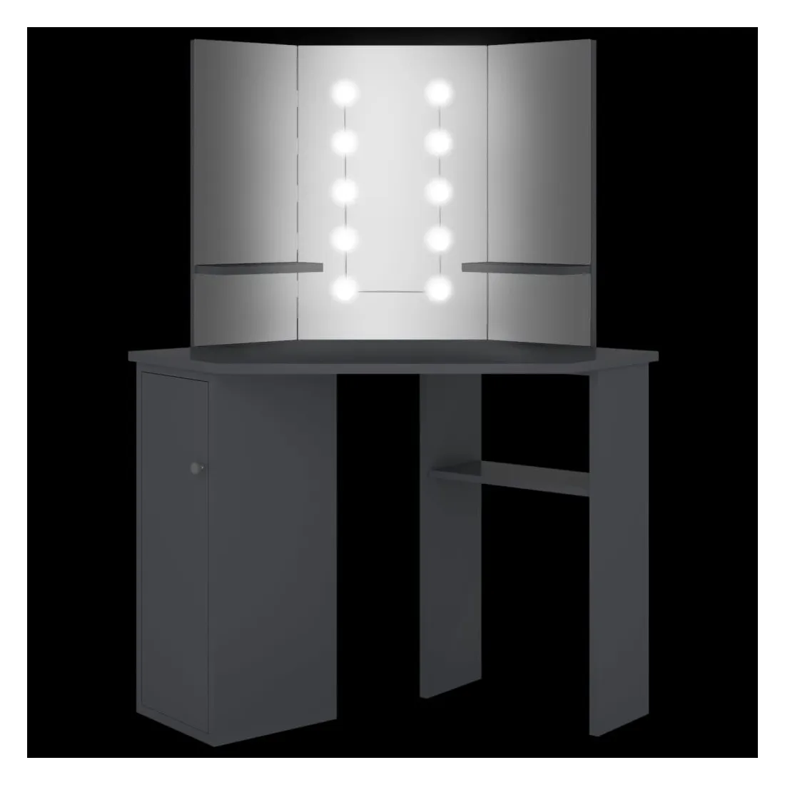 Faites votre routine matinale avec style avec cette coiffeuse élégante ! Cette coiffeuse, fabriquée à partir de MDF de qualité, présente une forme élégante et concise avec un style moderne. Elle est conçue pour s'intégrer parfaitement dans un coin tout en offrant beaucoup de rangement dans un petit espace ! Un casier large et une étagère ouverte sous la table offrent une place pour les articles de maquillage et gardent tout à sa place, face sur le côté pour un accès facile lorsque vous êtes assise à la table. De plus, un magnifique miroir à 3 panneaux offre une vue sur 3 côtés pour l'application du maquillage et ajoute une touche élégante au dessus de la table. Des étagères inférieures sont ajoutées aux deux panneaux latéraux pour les tasses, les pinceaux de maquillage, les crèmes et les lotions, les parfums et les objets de décoration. Les ampoules LED élégantes éclairent votre beauté également. Remarque : ce produit est doté d'un connecteur USB, mais la source d'alimentation certifiée de USB 5V n'est pas incluse.