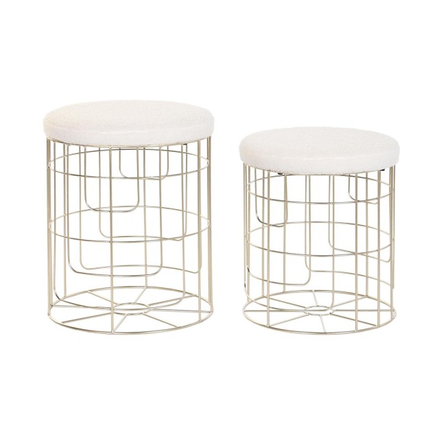 Voetensteun DKD Home Decor Beige Gouden Metaal Polyester Wit Modern (38 x 38 x 44 cm) (35 x 35 x 40 cm)